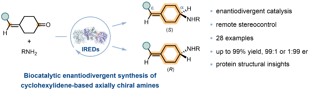 協(xié)和藥生所付海根課題組:亞胺還原酶催化的遠(yuǎn)程立體控制實(shí)現(xiàn)環(huán)己亞基軸手性胺的對(duì)映發(fā)散性合成