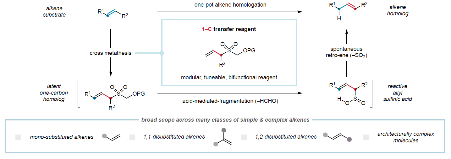 近日,英國(guó)劍橋大學(xué)(University of Cambridge)Matthew J. Gaunt課題組報(bào)道了一種適用于各類烯烴的催化一碳同系化方法。其通過使用新型多功能烯丙基砜試劑的固有反應(yīng)性,利...