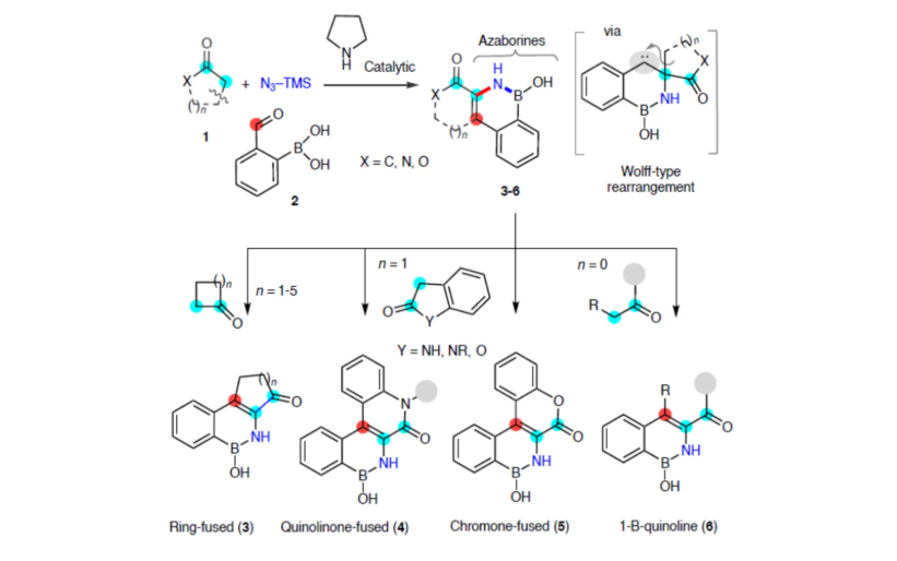 近日,印度中央藥物研究院與科學(xué)與創(chuàng)新研究院的Ravindra Kumar團隊報道了一種通過Wolff-型重排實現(xiàn)非張力環(huán)酮(n = 4-8)擴環(huán)的有機催化三組分模塊化合成方法,成功構(gòu)建了環(huán)稠合BN等排...