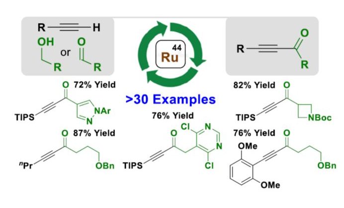 近日,美國德克薩斯州立大學(xué)奧斯汀分校Michael J. Krische課題組首次報(bào)道了一種金屬催化一級醇或醛的氧化炔基化反應(yīng),合成了一系列α,β-乙炔基酮(炔酮)衍生物。氘代實(shí)驗(yàn)表明,反應(yīng)涉及一種新...