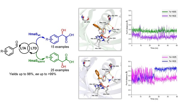 中國科學(xué)院上海藥物研究所廖蒼松團(tuán)隊與鄭明月團(tuán)隊合作,設(shè)計并構(gòu)建了一種基于C1延長策略的三酶級聯(lián)反應(yīng)和工程大腸桿菌,以苯甲醛類化合物和甘氨酸為原料,高效不對稱合成扁桃酸類化合物。相關(guān)成果以“Asymme...