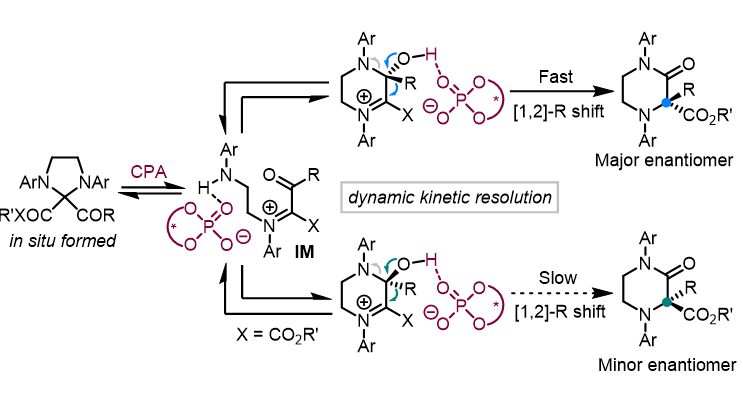 哌嗪酮骨架是眾多藥物分子和活性天然產(chǎn)物的關(guān)鍵結(jié)構(gòu)單元和常見藥效基團(tuán)。在合成方面,目前不對(duì)稱催化制備方法仍然有限,且基本局限于手性α-單取代哌嗪酮的合成,關(guān)于α,α-雙取代哌嗪酮的對(duì)映選擇性構(gòu)建則鮮有報(bào)...