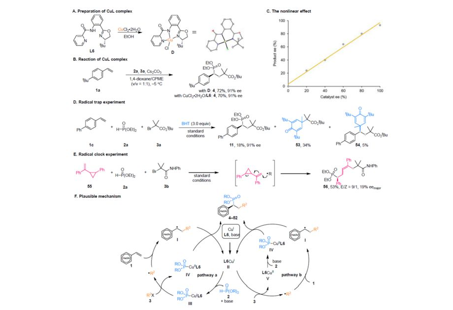 近日,南方科技大學(xué)劉心元團(tuán)隊(duì)報(bào)道了一種銅催化高化學(xué)和對(duì)映選擇性的苯乙烯不對(duì)稱自由基1,2-碳膦?;╟arbophosphonylation)反應(yīng)。其中,該反應(yīng)不僅利用了二烷基亞磷酸酯的P-H鍵具有較...