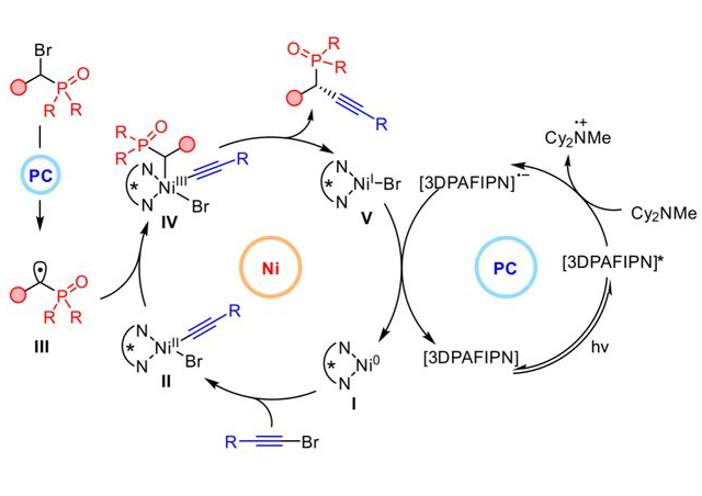 手性膦化合物在合成化學(xué)起著重要作用,利用偶聯(lián)策略可為其合成提供直接、便利、模塊化的方法。盡管α-烷基、芳基、烯基膦化合物都已經(jīng)有了相關(guān)報(bào)道,但是手性α-炔基膦酸酯尚缺乏高效合成途徑。在前期研究的基礎(chǔ)上...