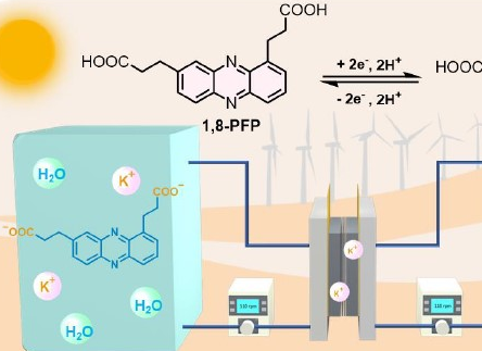 近日,西湖大學(xué)王盼課題組通過對(duì)化學(xué)反應(yīng)機(jī)理進(jìn)行深入研究,發(fā)展了一類丙酸取代的新型水溶性吩嗪衍生物(PFP)應(yīng)用于水系有機(jī)液流電池體系。該儲(chǔ)能體系在室溫和高溫環(huán)境中展現(xiàn)出了高濃度下零衰減的循環(huán)穩(wěn)定性,成...