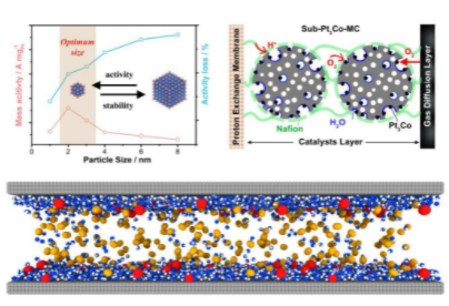 近日,中國科學(xué)技術(shù)大學(xué)化學(xué)與材料科學(xué)學(xué)院吳長征教授實驗課題組和工程科學(xué)學(xué)院近代力學(xué)系吳恒安教授理論計算課題組合作,合成了超小尺寸的鉑基金屬間化合物電催化劑,基于該催化劑組裝的質(zhì)子交換膜燃料電池在300...