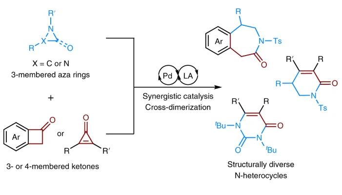 日前,南開大學元素有機化學國家重點實驗室趙東兵課題組在合成化學領(lǐng)域取得突破。團隊提出含氮雜環(huán)化合物合成新策略,首次利用張力環(huán)交叉二聚擴環(huán)反應,實現(xiàn)多類具有重要生物活性的含氮雜環(huán)化合物的高效化學合成。相...