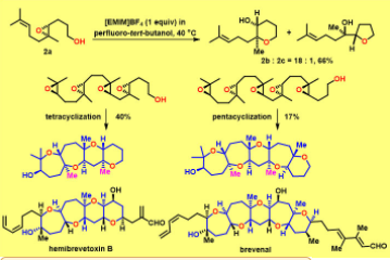 大多數(shù)由海洋藻類產(chǎn)生的海洋稠聚醚類天然產(chǎn)物對(duì)人有極強(qiáng)的神經(jīng)毒性,但是具有7/7/6/7/6五環(huán)結(jié)構(gòu)的brevenal不僅沒有神經(jīng)毒性,它還可以通過競(jìng)爭(zhēng)性地結(jié)合神經(jīng)毒性稠聚醚的受體蛋白減輕它們?cè)斐傻闹卸?..