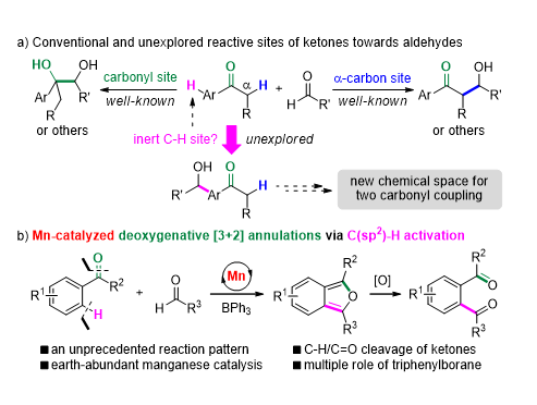 不同于經(jīng)典得aldol反應(yīng),中國科學(xué)院化學(xué)研究所王從洋課題組使用錳催化體系實現(xiàn)了基于惰性芳基C-H鍵活化的酮醛[3+2]脫氧環(huán)化反應(yīng),開啟了酮醛反應(yīng)的新模式。...