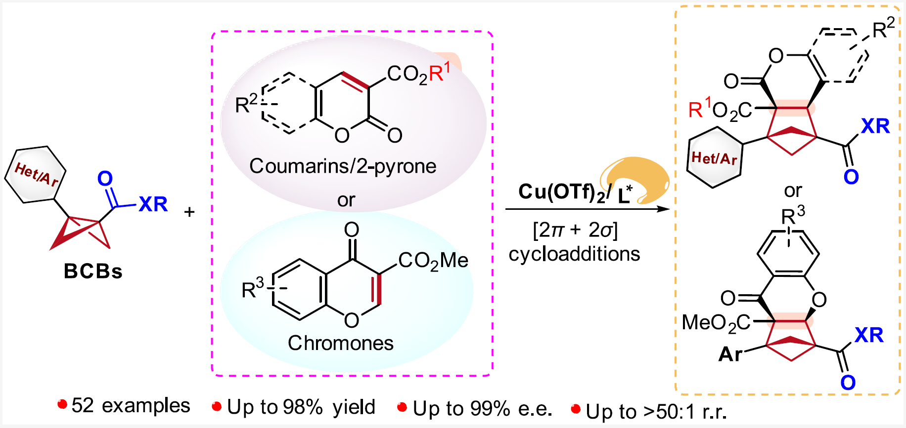 近日,清華大學(xué)深圳國際研究生院/深圳灣實驗室蔣宇揚團隊、南方科技大學(xué)劉心元團隊和清華大學(xué)深圳國際研究生院林進順團隊報道了路易斯酸催化雙環(huán)[1.1.0]丁烷(BCBs)分別與香豆素、2-吡喃或色酮等的不...