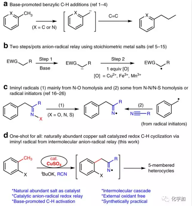 近日,中國科學(xué)技術(shù)大學(xué)的康彥彪研究員課題組和南京工業(yè)大學(xué)曲劍萍教授合作報道了堿促進的芐位C-H鍵活化和銅催化的碳負(fù)離子自由基氧化還原策略結(jié)合的環(huán)化反應(yīng),實現(xiàn)了以甲苯和腈類衍生物為原料的N-H吲哚及其類...