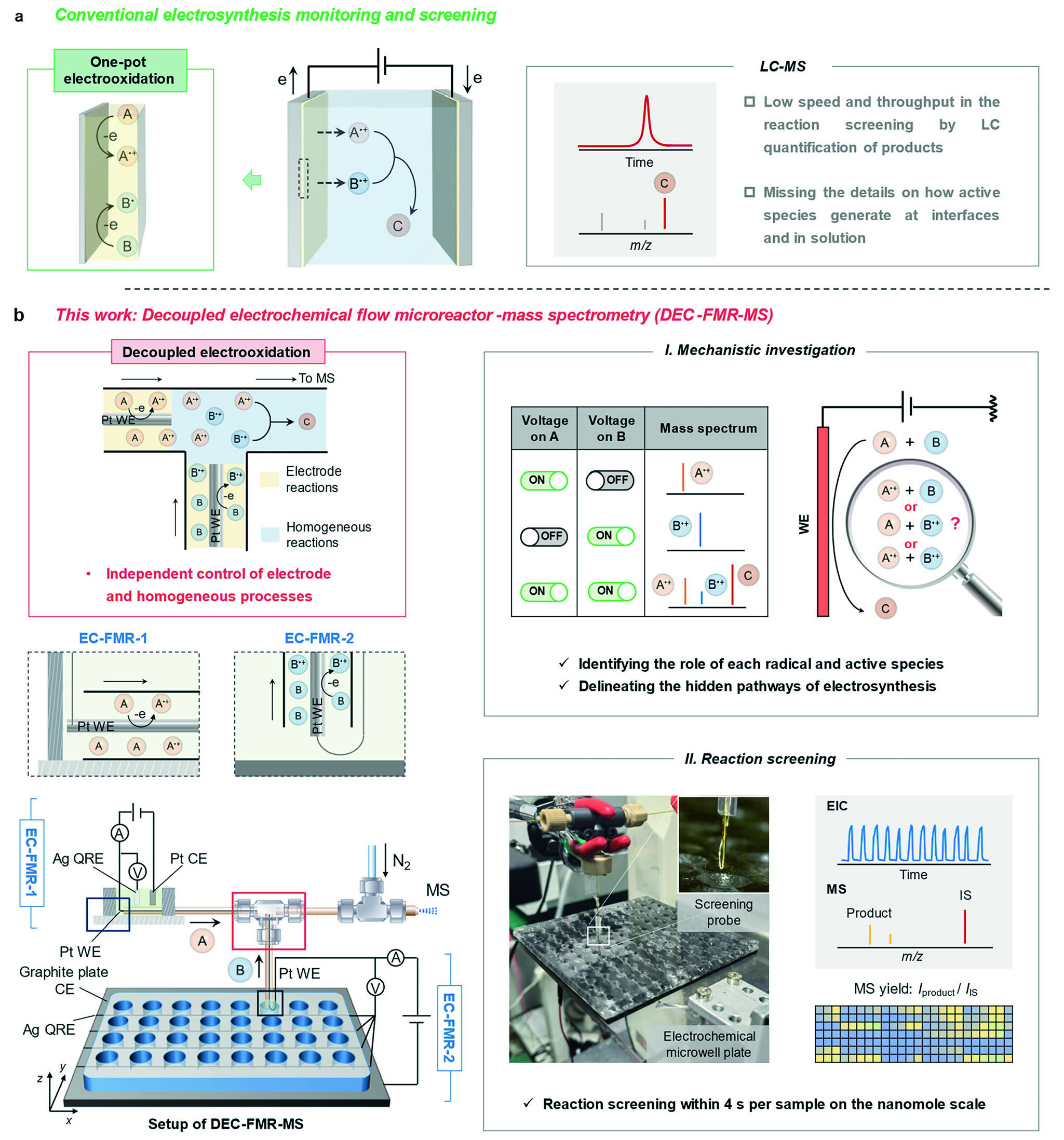 近日,南京大學(xué)閔乾昊團(tuán)隊(duì)與程旭團(tuán)隊(duì)合作開發(fā)了一種解耦式電化學(xué)流動(dòng)反應(yīng)器-原位質(zhì)譜分析平臺(DEC-FMR-MS),實(shí)現(xiàn)了有機(jī)電合成反應(yīng)的快速篩選與多步反應(yīng)中間體的拆解剖析。該工作在Nature Com...