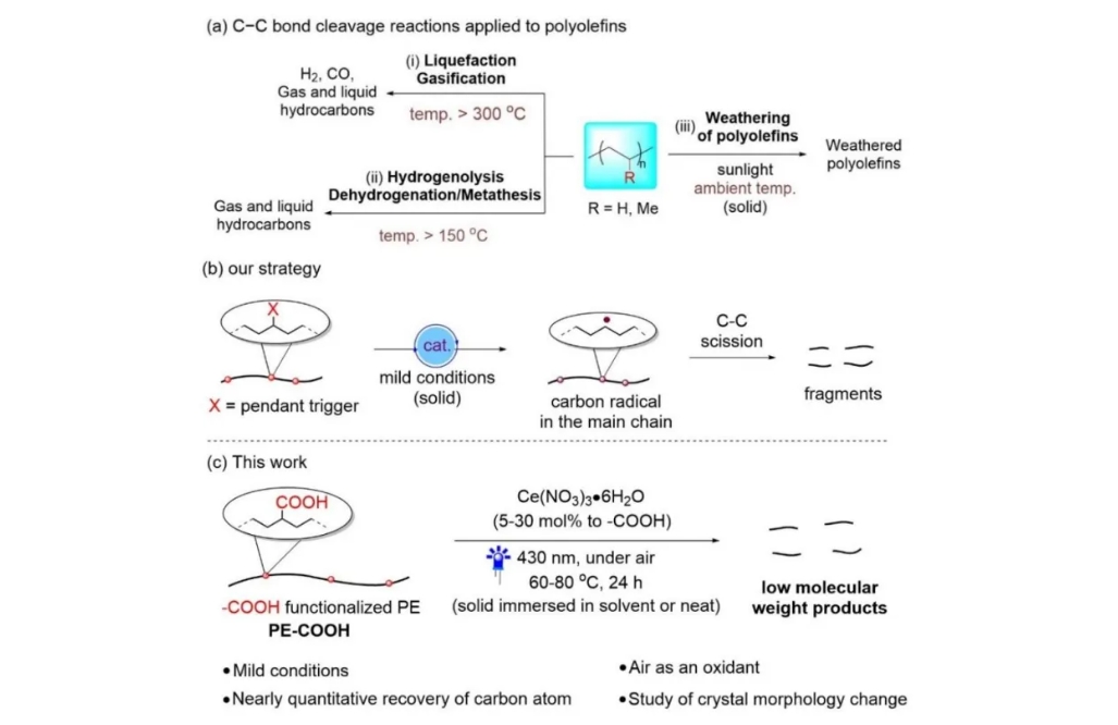 開發(fā)新型的廢聚烯烴高效降解和回收利用技術(shù),不僅能夠降低環(huán)境負(fù)荷,而且有望減少對(duì)化石資源的依賴。在本文中,東京大學(xué)Kyoko Nozaki教授課題組利用商業(yè)化的鈰催化劑,實(shí)現(xiàn)了含有少量羧酸基團(tuán)的晶態(tài)聚乙...