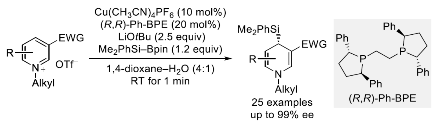 近日,柏林工業(yè)大學Martin Oestreich課題組報道了一種銅催化前手性三氟甲磺酸吡啶鎓(pyridinium triflates)與硅親核試劑(由Si-B試劑中釋放生成)的C4-選擇性加成反應...